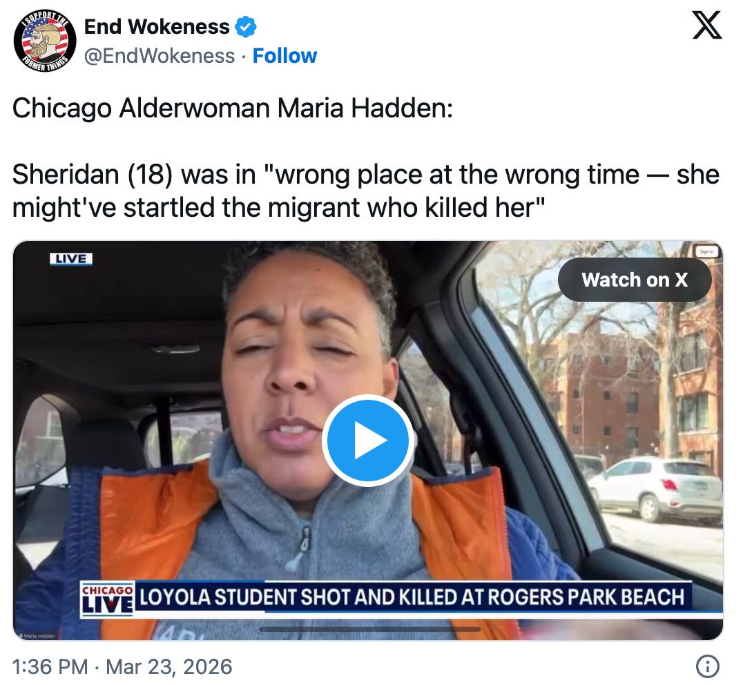 Depraved thoughts from Hadden - a poster child of the cesspool of Woke Chicago - once a great city.